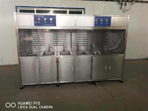 由超声波发生器所发出的高频超声振荡信号,通过换能器转换成高频机振荡而传播到介质—清洗溶剂中,利用超声波在清洗溶剂中的“空化作用”,使液体流动而产生数以万计的小气泡,这些气泡在超声波纵向传播成的负压区形成、生长,而在正压区迅速破裂,就是在这种被称为“空化”效应的过程中气泡破裂产生超过1000个大气压的瞬间高压,连续不断产生的瞬间高压产生一串小“爆炸”不断地冲击被清洗物体的表面,孔隙、缝道,使物体表面及缝隙中的污垢迅速剥落,从而达到被清洗物件净化的目的。因此利用超声波清洗质量好、速度快。对一般常规清洗方法,可达到清洁度要求,尤其对几何形状比较复杂,带有各种小孔,弯孔和盲孔等被清洗物件,采用超声波清洗的洁净效果更为明显。